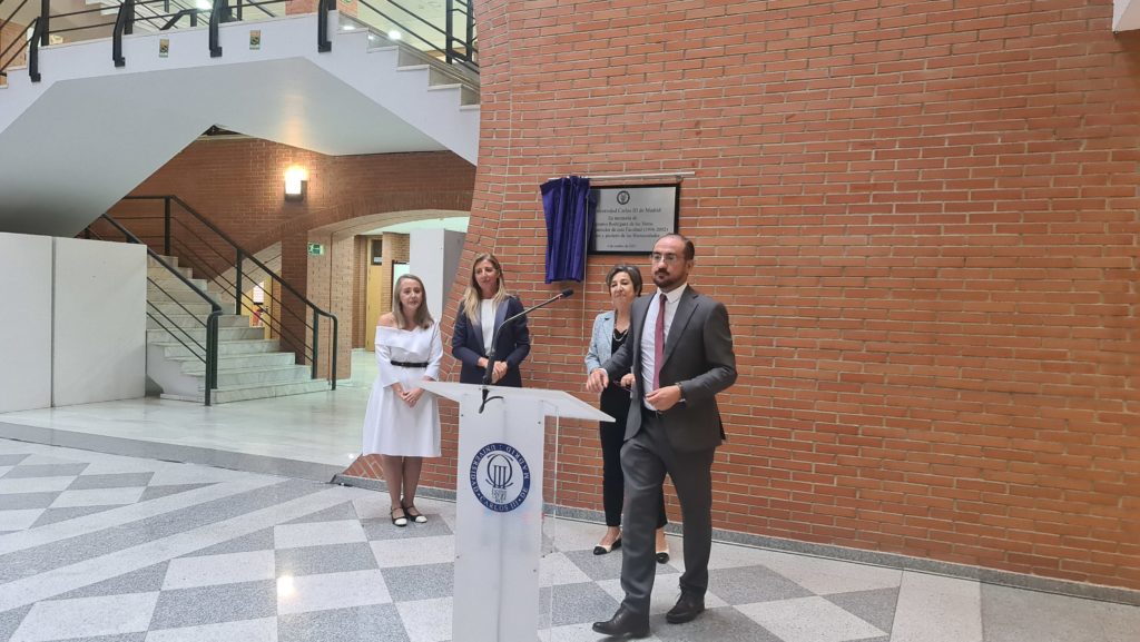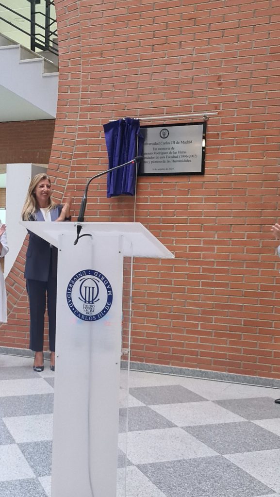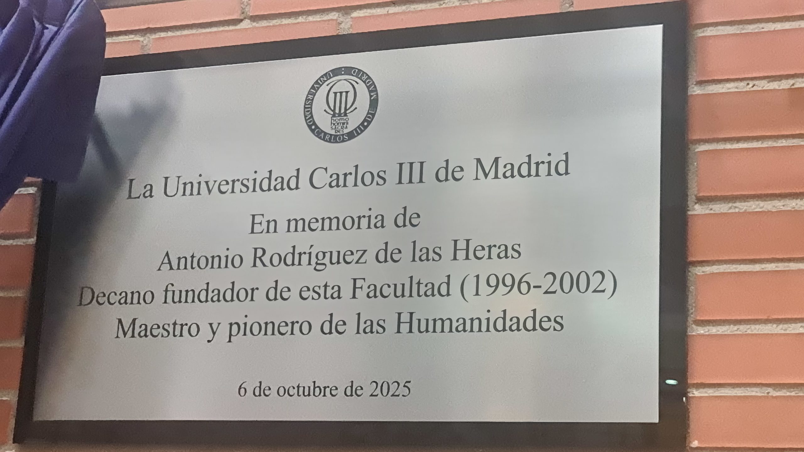 El lunes 6 de octubre 2025 hemos asistido al acto de inauguración de la placa en memoria al maestro Antonio Rodríguez de las Heras en el hall del edificio Concepción Arenal de nuestra universidad, en el campus de Getafe.